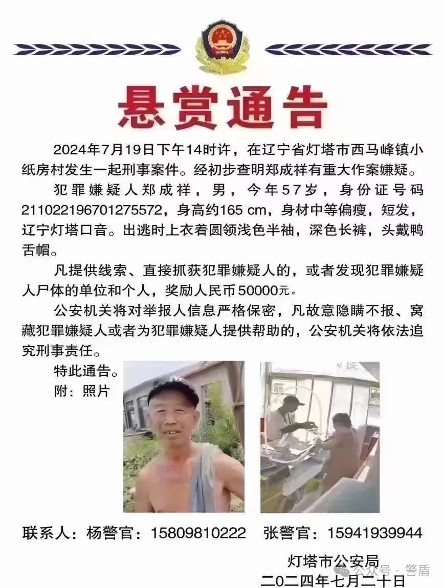 辽宁发生重大刑案!嫌疑人在逃,警方发布悬赏通告