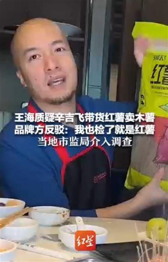 9月25日,红星新闻从王海团队获知,涉事产品是他们8月份在辛吉飞切片短视频推荐下购买的某品牌红薯粉条。红星新闻注意到,辛吉飞带货短视频宣称,货品配料表只有红薯淀粉,没有木薯淀粉,不掺别的。