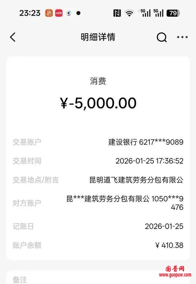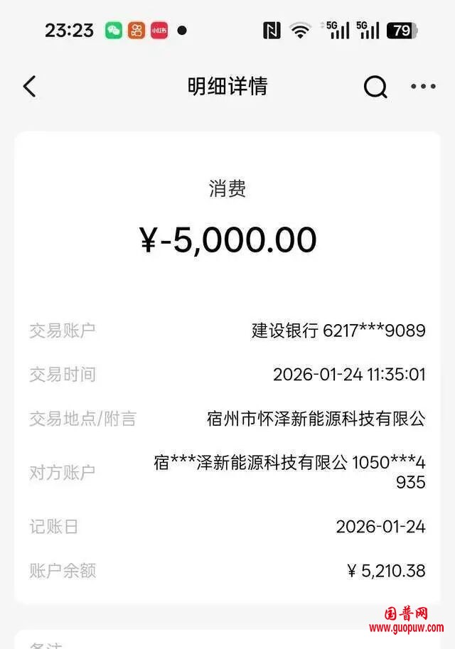 记者看到,3笔资金分别流向四川富顺县泽彬通讯器材经营部、安徽宿州市怀泽新能源科技有限公司,和云南昆明道飞建筑劳务分包有限公司。后两笔明细显示为“消费”。